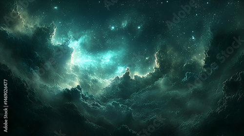 Wall mural deep space nebula with ethereal luminous clouds.