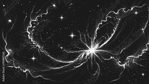 Wall mural : Deep space scene background in stippling style with amazing huge nebula and glowing stars cluster in