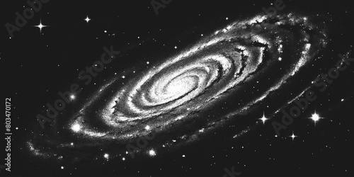 Wall mural : Deep space scene background in stippling style with huge glowing spiral galaxy and stars - milky way