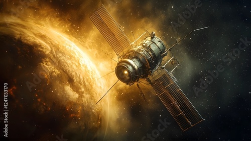 The watermark will not be included on Wall mural.: Deep space telescope capturing unidentified celestial object rapidly approaching earth sparking curi