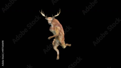Deer dancing cg fur 3d rendering animal realistic cgi vfx animation loop composition 3d mapping cartWall mural