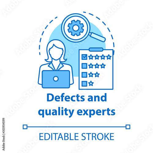 Wall mural : Defects and quality experts turquoise concept icon - software development idea thin line illustration