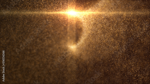 Wall mural : Defocus mysterious sparkling illuminated dust particles floating in the abyss for celebration and fe