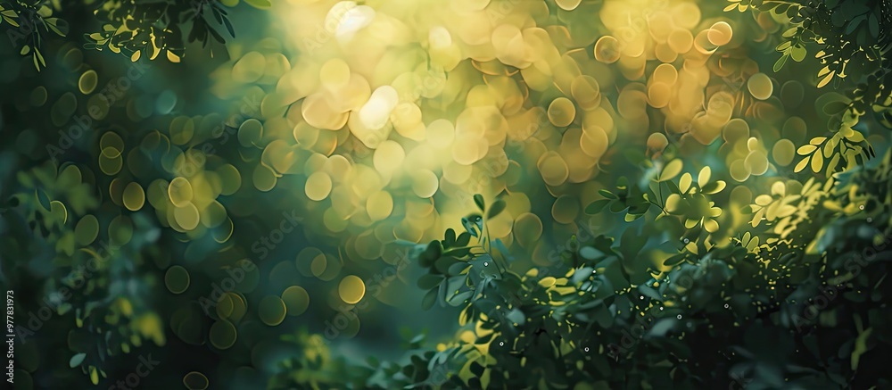 Wall mural defocused abstract backdrop of a densely leafed tree. copy space image. place for adding text and de