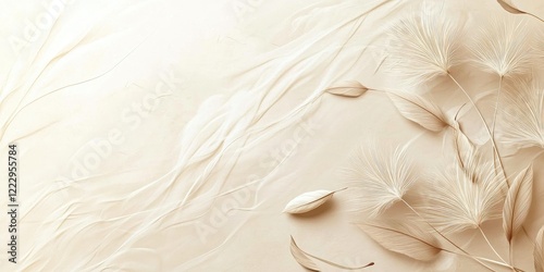 The watermark will not be included on Wall mural.: Delicate dandelion seeds on a softly textured background with ample space for text and elegant curve