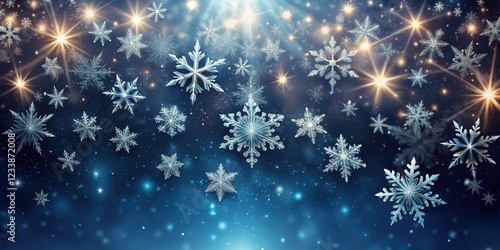 Wall mural delicate snowflake formations gently fall onto a darkened celestial background with twinkling starli - Wall murals Wall mural delicate snowflake formations gently fall onto a darkened celestial background with twinkling starli - Wall murals