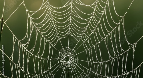 The watermark will not be included on Wall mural.: Delicate spiderweb covered with shimmering morning dew drops closeup macro view showing the intricat