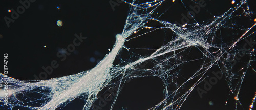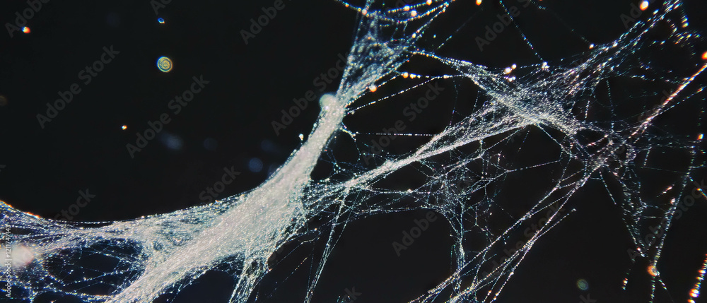 Wall mural : Delicate spiderweb texture showcasing intricate threads and sparkling sheen