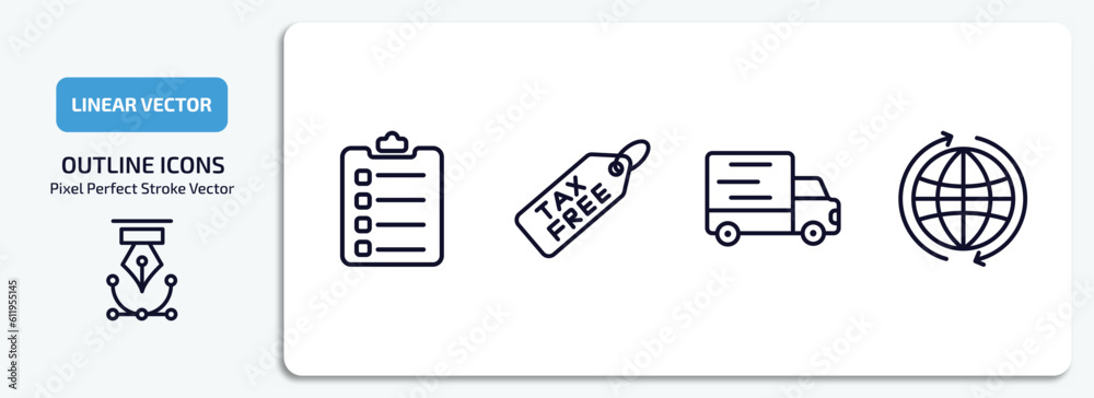 Wall mural delivery and logistic outline icons set. delivery and logistic thin line icons pack included clipboa
