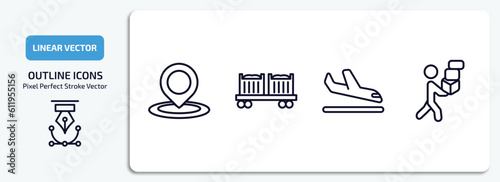Wall mural delivery and logistic outline icons set. delivery and logistic thin line icons pack included trackin