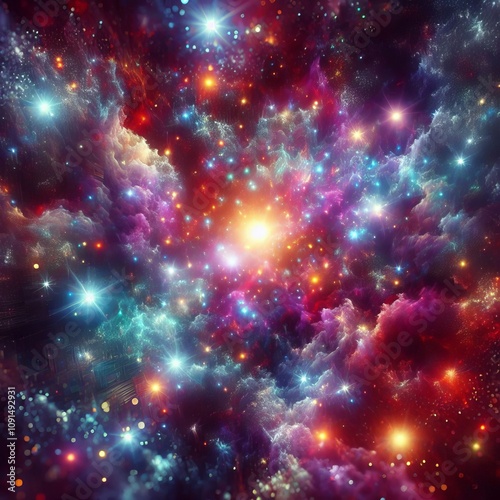 Wall mural dense clusters of stars with holographic glows creating a rich a