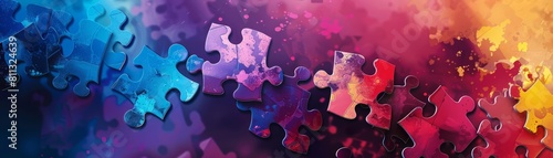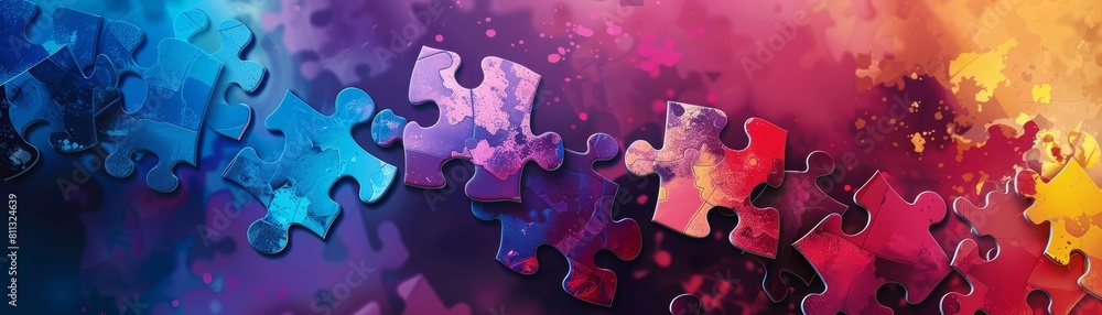 Wall mural design a banner with a header showcasing connecting jigsaw puzzle pieces and ample copy space