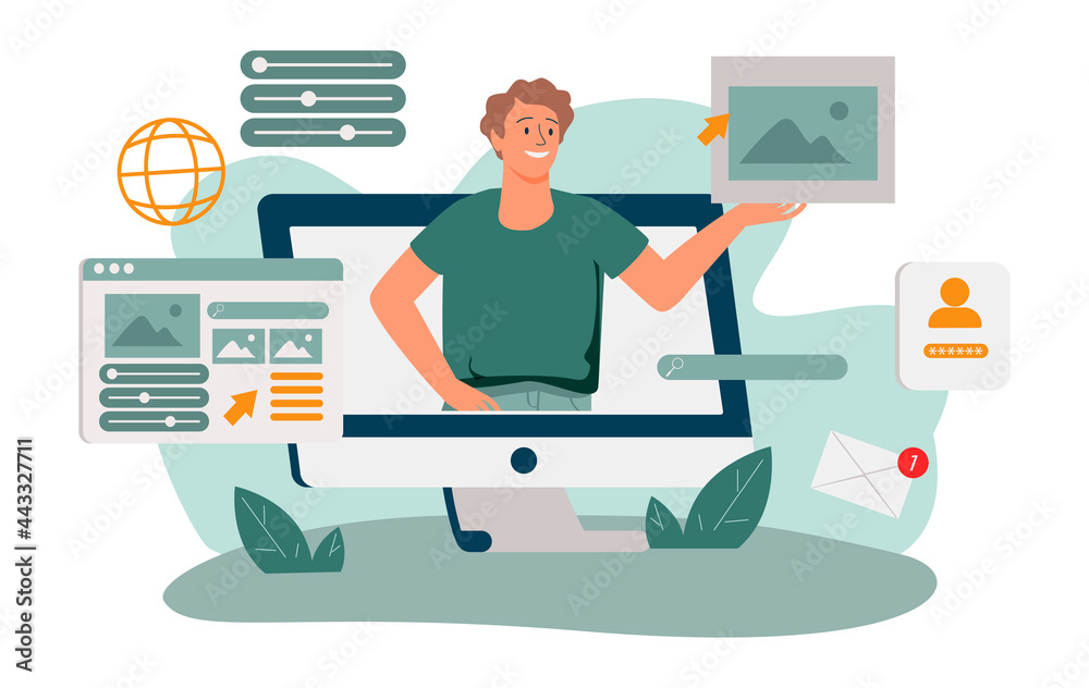 Wall mural design and programming banner, web landing page, advertisement. designer working on ui ux design or  - Wall murals Wall mural design and programming banner, web landing page, advertisement. designer working on ui ux design or - Wall murals