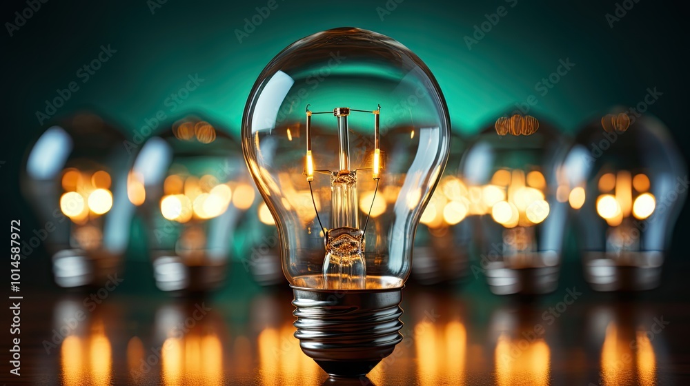 The watermark will not be included on Wall mural.: Design banner for generic smart bulb glowing with copy space area