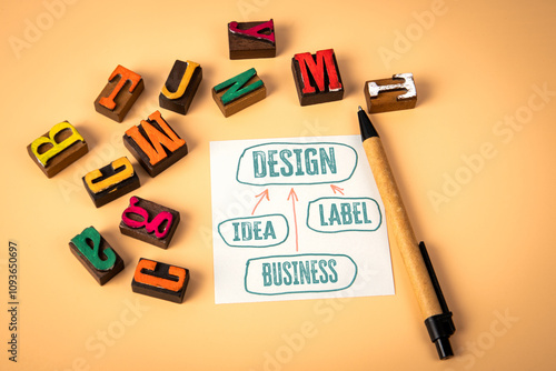 Wall mural : Design concept - notepad and wooden alphabet letters on a light background