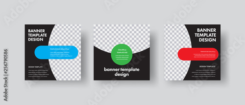 Wall mural : Design of black square web banners with round and semicircular shapes for photos -
