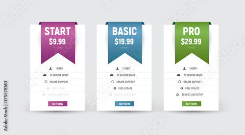 The watermark will not be included on Wall mural.: Design of vector white price tables with ribbon for the title