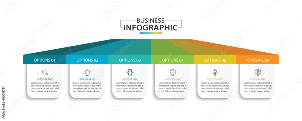 The watermark will not be included on Wall mural.: Design template for vector infographic labels with icons and 6 options or steps -