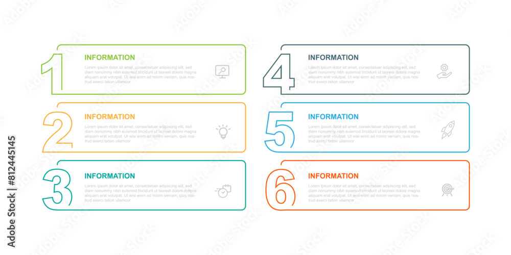 Wall mural design template infographic vector element with 6 step line square and number suitable for web prese - Wall murals Wall mural design template infographic vector element with 6 step line square and number suitable for web prese - Wall murals