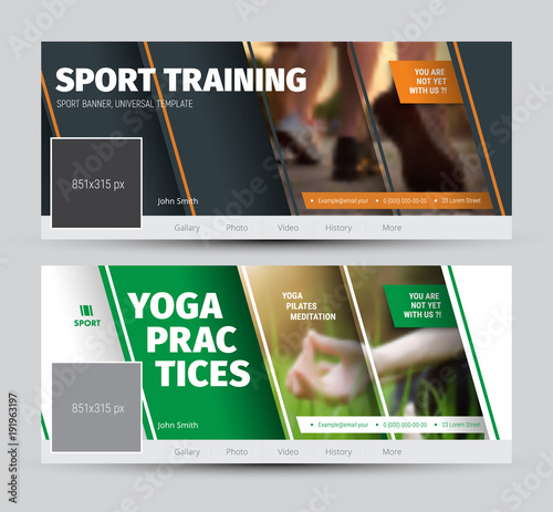 Wall mural : Design vector black and white banner for social networks with diagonal lines and photos