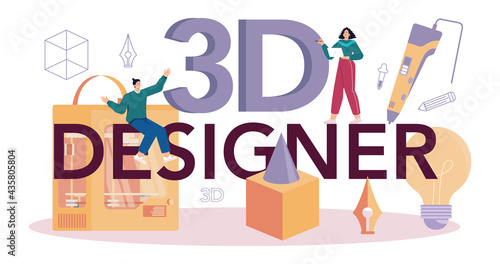 Wall mural designer 3d typographic header. digital drawing with electronic tools