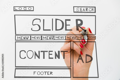 Wall mural designer drawing website development wire frame. structure of web page. web design - Wall murals Wall mural designer drawing website development wire frame. structure of web page. web design - Wall murals