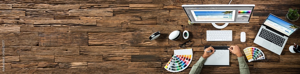 Wall mural designer editing photo on computer