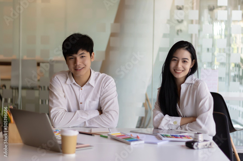 The watermark will not be included on Wall mural.: Designer girl or programmer drawing website ux layout app development