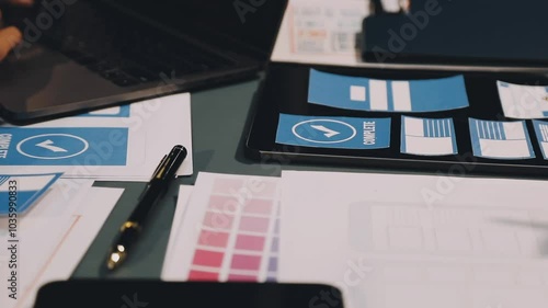 Wall mural designers drawing website ux app development. user experience concept. - Wall murals Wall mural designers drawing website ux app development. user experience concept. - Wall murals