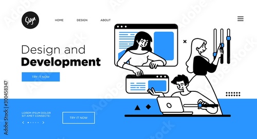 Designing developing and programming technologies concept - web page template with modern outline vecWall mural