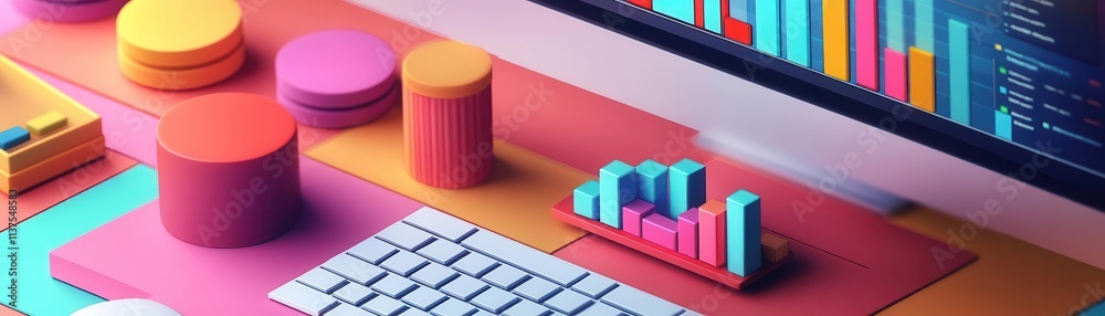 Wall mural desktop computer metrics tracking flat design top view data analytics theme 3d render - Wall murals Wall mural desktop computer metrics tracking flat design top view data analytics theme 3d render - Wall murals