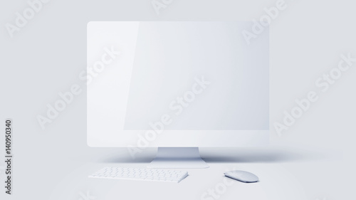 The watermark will not be included on Wall mural.: Desktop with blank white computer screen - mock up