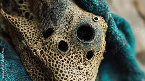 Wall mural detailed close-up of unique textured shell on exotic fabric