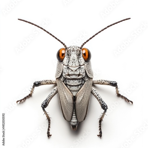 The watermark will not be included on Wall mural.: Detailed close up photograph of a grasshopper insect showing its intricate textures patterns and ana