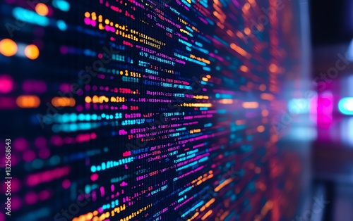 The watermark will not be included on Wall mural.: Detailed closeup of colorful programming code on a monitor, blurred background, generative ai techno