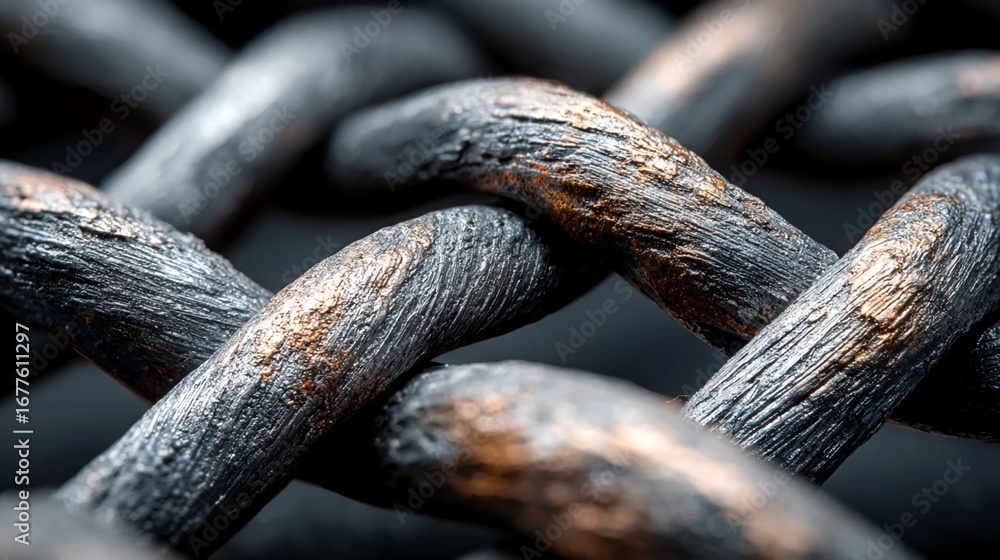 The watermark will not be included on Wall mural.: Detailed macro shot of metallic wire mesh with sharp focus on interwoven patterns and textured surfa