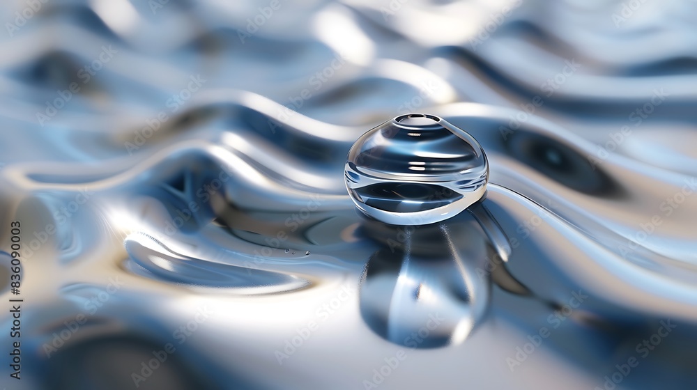 The watermark will not be included on Wall mural.: Detailed view of 3d-rendered single drop and rippled surface -