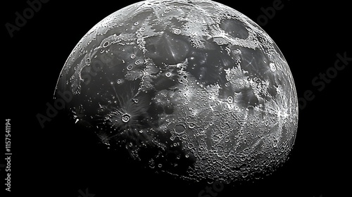 The watermark will not be included on Wall mural.: Detailed view of the moon showcasing its surface craters and features on a clear night sky