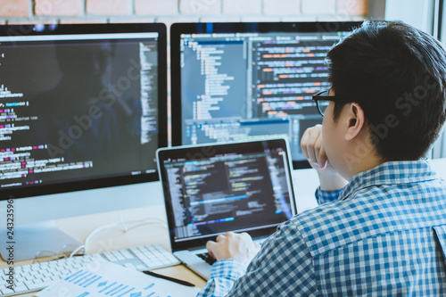 Wall mural : Developer programming and coding technology - website design safety of the social world cyberspace co