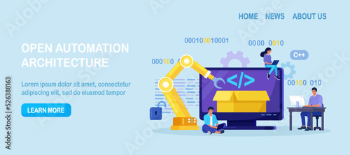 Wall mural : Developers creating software script at computer with open robotic soft - open automation architecture