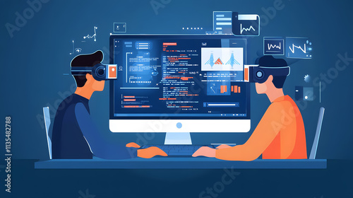 Wall mural developing coding technologies with website design in a virtual meeting context - Wall murals Wall mural developing coding technologies with website design in a virtual meeting context - Wall murals