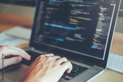 Wall mural : Developing programmer development website design and coding technologies working in software company