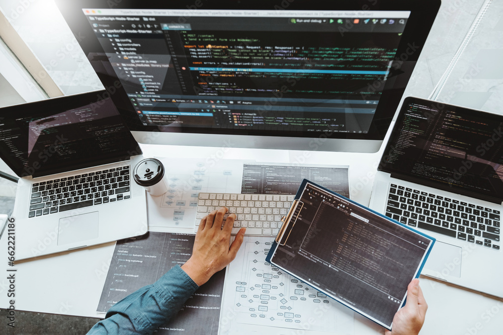 Wall mural : Developing programmer development website design and coding technologies working in software company