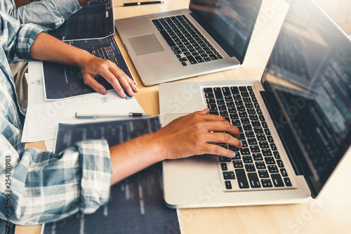 Wall mural : Developing programmer team development website design and coding technologies working at software co