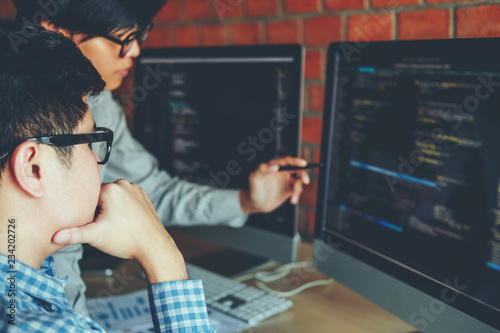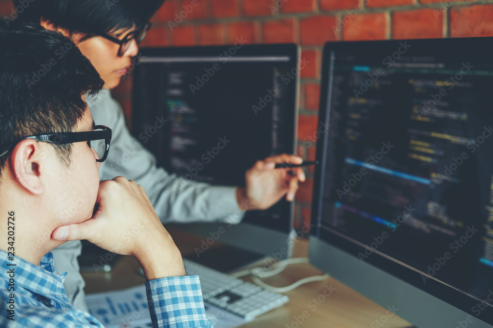 Wall mural : Developing programmer team development website design and coding technologies working in software co