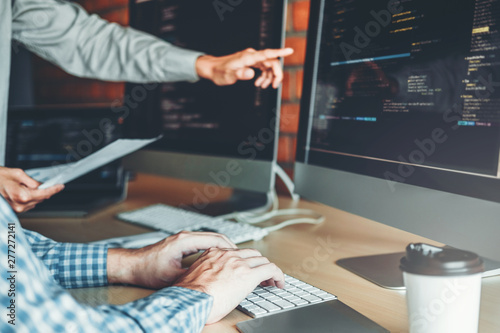 Wall mural : Developing programmer team development website design and coding technologies working in software co