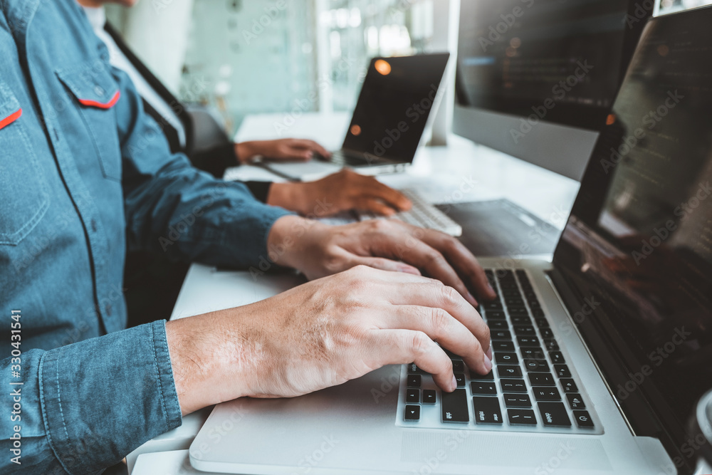 Wall mural : Developing programmer team development website design and coding technologies working in software co
