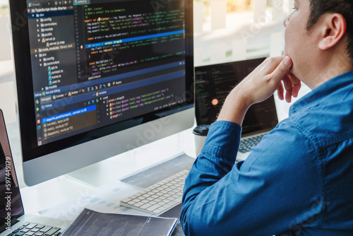 Wall mural : Developing programmer team development website design and coding technologies working in software co