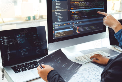 Wall mural : Developing programmer team development website design and coding technologies working in software co