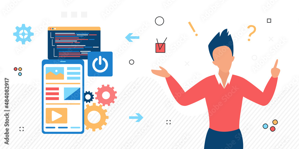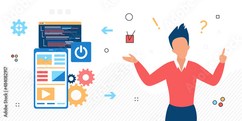 Wall mural : Development interface mobile application designer work - optimizing user experience software engineer